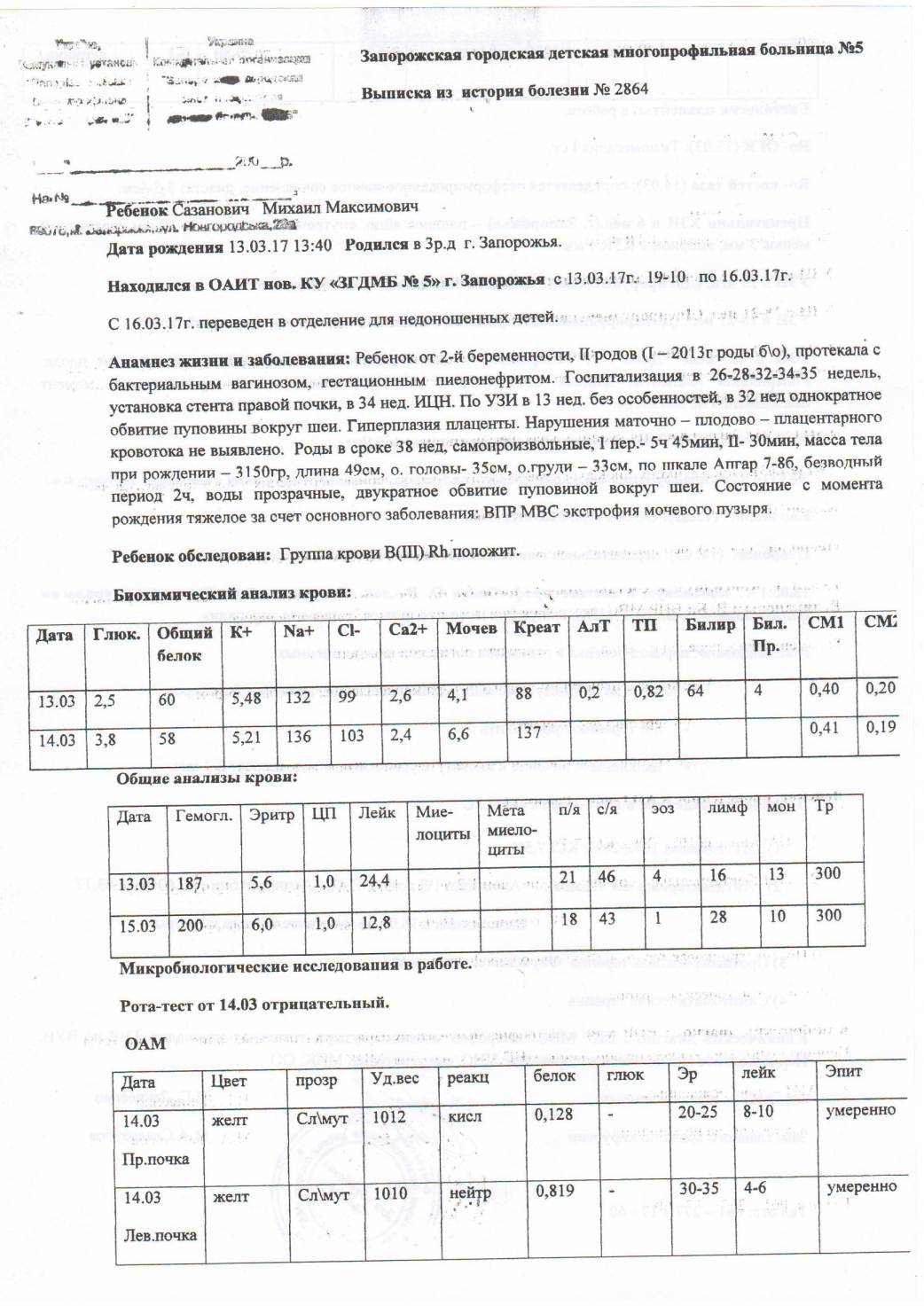 Сазанович Михаил, 13.03.2017 года рождения