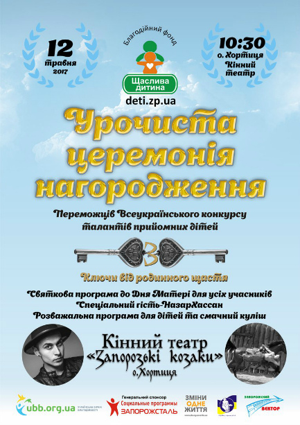 Благодійний Фонд «Щаслива дитина» з метою розвитку сімейного влаштування дітей проводить всеукраїнський конкурс відео історій, які висвітлюють таланти дітей-сиріт, що вже виховуються у прийомних родинах під назвою «Ключі від родинного щастя».