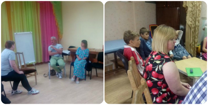 У двох залах, для дітей та батьків, проходили інтерактивні лекції від тренера проекту, прийомної мами та спеціаліста служби по справах дітей Оріхівської держадміністрації, Зєнцової Лариси Станіславовни та практичні рольові ігри по правовим питанням від тренера, Преподобного Віктора Антоновича.