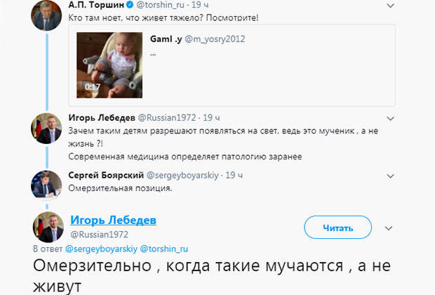 Комментировать нечего. Есть люди, с которыми не хочется, например, присесть на чашку чая. Вот этот товарищ (депутат Лебедев) — из таких. Я бы с ним не стал по своей воле общаться. Только если как с подзащитным (тут уж адвокат не выбирает). Подобного рода разговоры, конечно, бывают. Среди профессионалов. Когда-то новорожденных весом менее полутора килограммов не спасали. Теперь некоторые из таких детей уже окончили школу, а сейчас не спасают, если не ошибаюсь, уже вдвое более «легких» младенцев. Но это решают медики, причем в ожесточенных спорах и с применением самых последних достижений науки.
