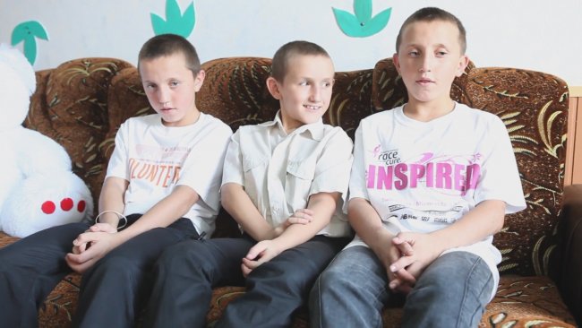 Братья Кирилл, Саша и Ваня. Кирилл и Саша близнецы им 13 лет (2004 г.р.) и они учатся в 8 классе. Они похожи не только внешне, их вкусы и предпочтения тоже совпадают. В школе обоих братьев увлекают украинский язык, физкультура, а на досуге они предпочитают мультфильмы о Скуби Ду, Томе и Джери, а также все фантастические фильмы о супергероях, их любимые герои - капитан Америка и Халк. Но это не всё что у них есть общего, ещё они разделяют свои увлечения с младшим братом Ваней. Ивану 9 лет (2007 г.р.), он ученик 4-го класса. Ваня хорошо учится, ему очень нравится в школе,. Он говорит что все предметы в школе для него интересные, а особенно математика. На досуге мальчики вместе катаются на велосипедах и играют в футбол и баскетбол. В будущем они решили работать с техникой, будь - то комбайн или трактор.