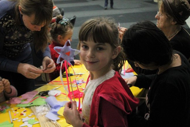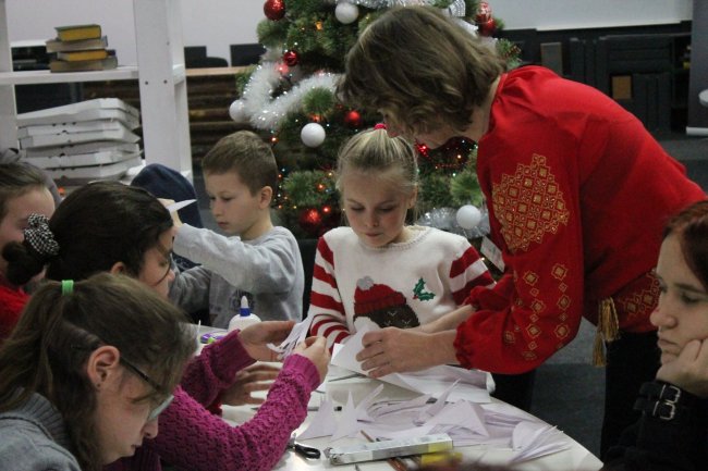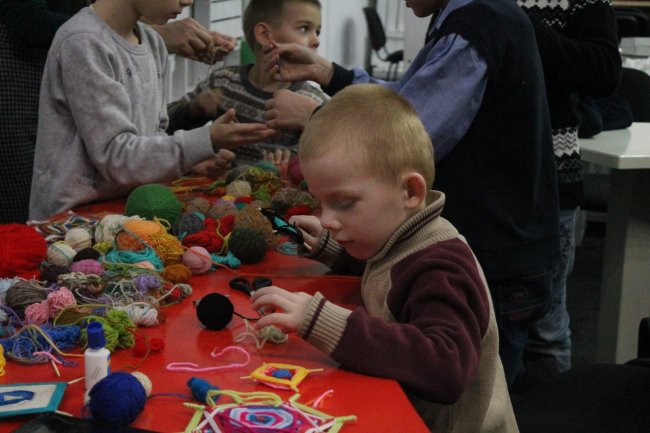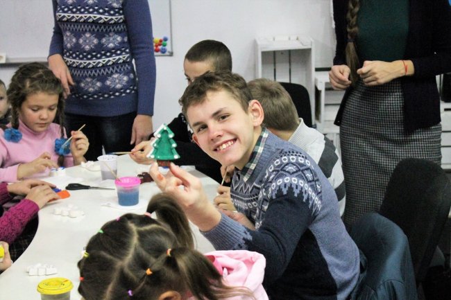 Тем временем дети с известными мастерами хенд-мейда, Александрой Чиркой, Ольгой Александровой и Оксаной Калиной, готовили украшения для себя и дома: разукрашивали различные фигурки из гипса, вязали яркие мандалы, вырезали объемные снежинки; маленькие принцессы даже сделали для себя волшебные палочки и короны. Конечно, родители также присоединились к творческому процессу, который не мог оставить равнодушным ни одного участника нашего торжества.