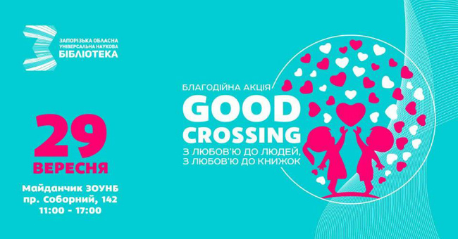 29 вересня, напередодні Всеукраїнського дня бібліотек, Запорізька обласна універсальна наукова бібліотека та Благотворительный фонд "Счастливый Ребенок" пропонують долучитись до благодійної акції "Goodcrossing: З любов'ю до людей, з любов'ю до книжок". Goodcrossing – це кругообіг добра у всесвіті, який ми можемо втілювати разом.