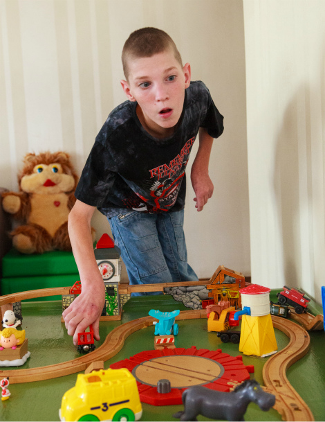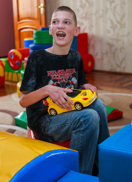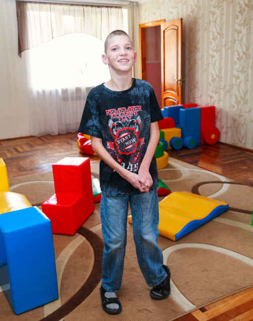 Незважаючи на деякі фізіологічні обмеження, старанний і працьовитий, Олег самостійно харчується, повністю себе обслуговує, дотримується режиму закладу і навіть намагається допомагати вихователям.
