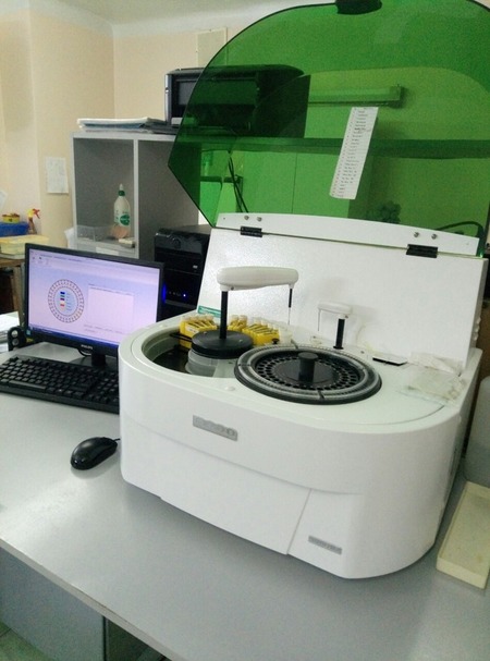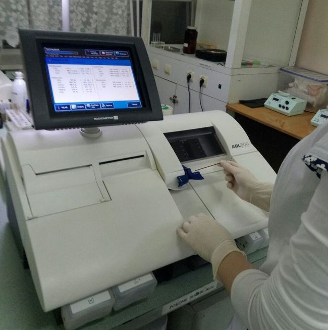 Запорізька обласна клінічна дитяча лікарня нещодавно придбала такий прилад, який може з крапельки крові об'ємом 0, 15 мл визначити не тільки показники кисню крові, а й інші важливі біохімічні параметри, що робить лікування ефективнішим. Аналіз на гази артеріальної крові вимірює кислотність, рівень двоокису вуглецю й кисню в крові з артерії. Виміри показують, наскільки добре легені малюка доставляють кисень у кров.