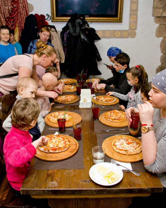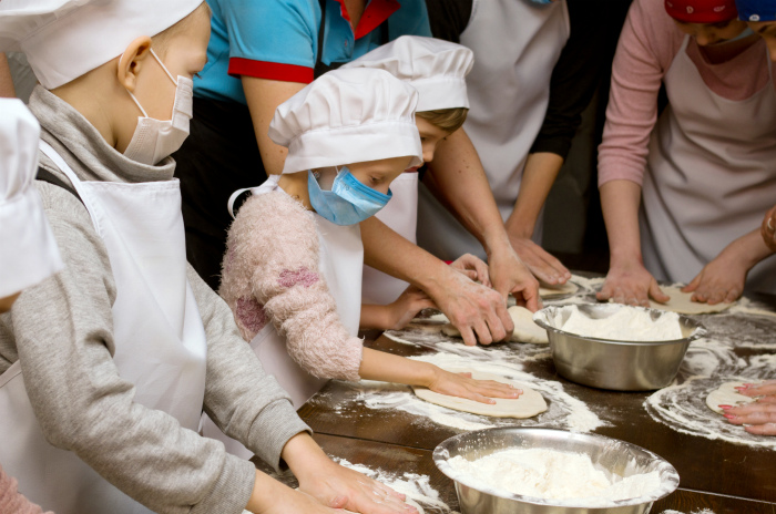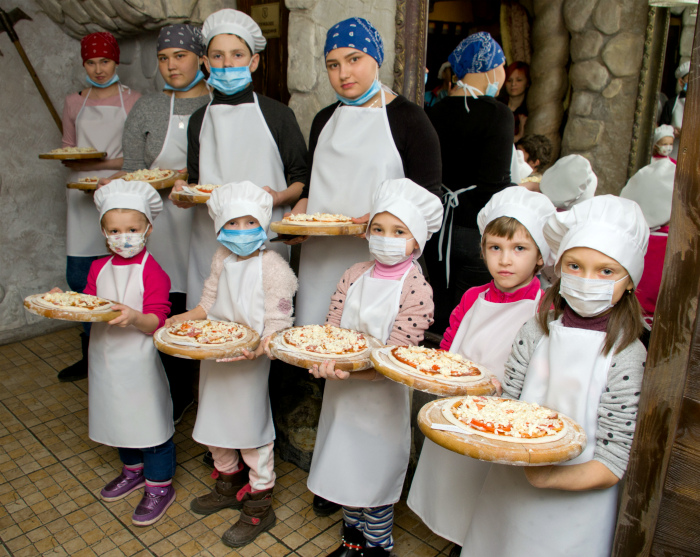 Ребят научили всем хитростям приготовления идеального блюда: как правильно раскатывать тесто, как смазывать соусом и выкладывать начинку. Каждый ребенок собственноручно готовил свою первую настоящую пиццу! Дети внимательно слушали мастеров, а затем, затаив дыхание, творили. А родители восторженно наблюдали в сторонке за всем происходящим. Творческий процесс настолько охватил всех участников, что, кажется, на пару часов дети и их родители забыли про страшные диагнозы, болезненные процедуры и скучные больничные стены.