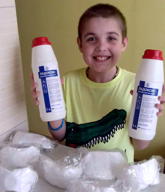 Дез.средства нам также посчастливилось найти по минимально возможной цене на день закупки. Наших средств хватило на 29 литров! Все они уже розданы и разосланы в семьи, где живут особо тяжелые взрослые и дети с муковисцидозом. Этого, конечно, мало – сейчас мы находимся в активном сборе средств и поставщиков, чтобы каждая особенная семья была в безопасности. Также к нам «плывут» из-за рубежа 320 респиратора уровня ffp2. Ожидаем их в конце апреля.