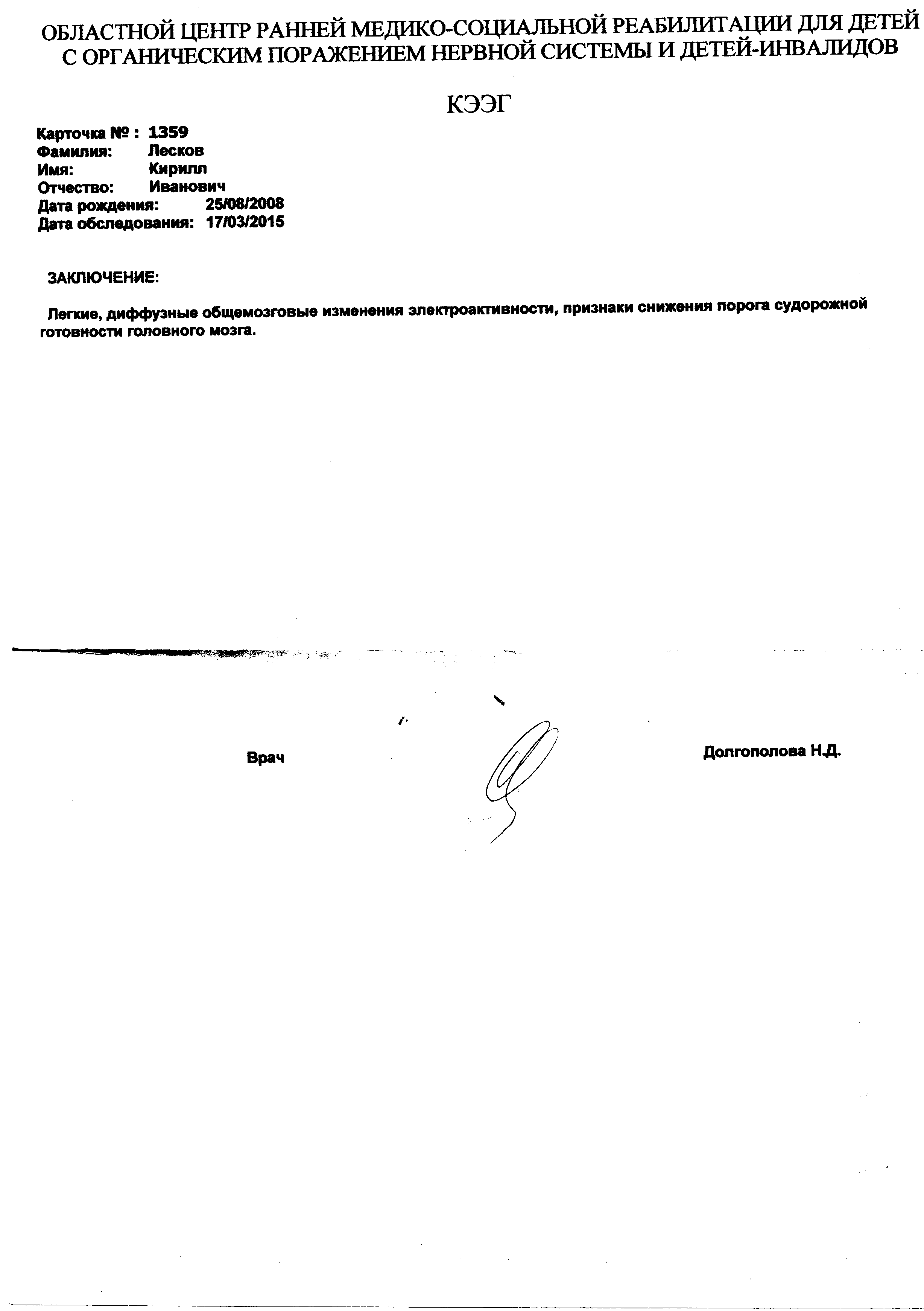 Кирилл Лесков, 25.08.2008 года рождения