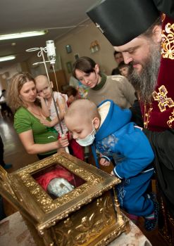- Перед ним мы молились и просили, чтобы Господь даровал здравие всем недужным, а особенно болящим детям. Мы также молились о том, чтобы Господь помог родителям, утешил их, подкрепил. И мы говорим родителям: «Пусть ваши детки улыбаются, а в их глазах пусть всегда будут только слезы радости!»
