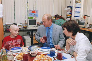 А вот вам еще одна такая история. Жил в Калужской области мальчик по имени Дима Рогачев. И вот однажды он заболел. Врачи из Калуги поставили диагноз – лейкоз. И сказали, что надо ехать в Москву, потому что в Калуге такое не лечат. Дима не хотел ехать и согласился только на том условии, что в Москве ему удастся поесть блинов с Путиным.