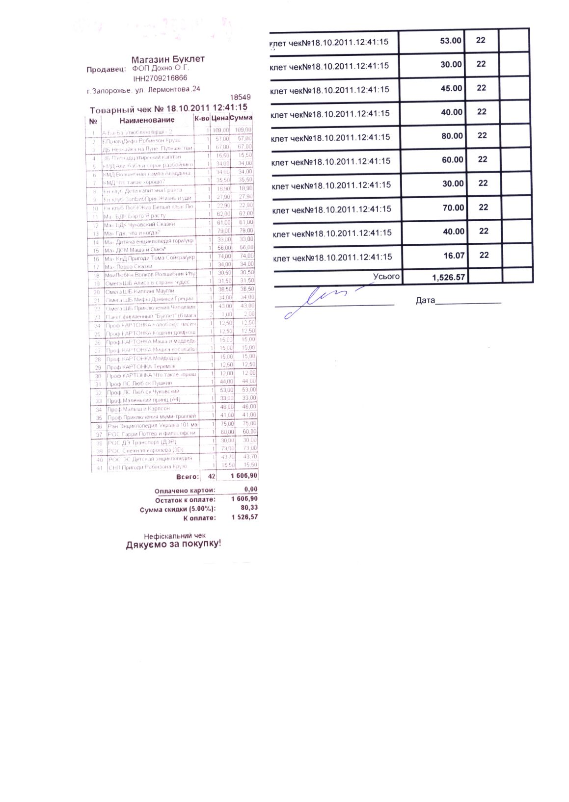 Было закуплено 42 книги на общую сумму 1526 гривен: