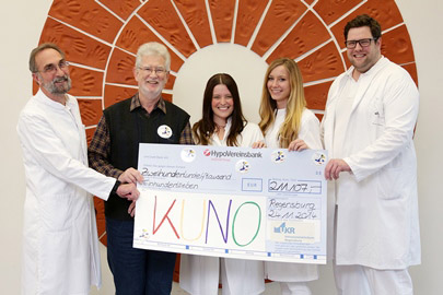 "Mein besonderer Dank gilt den vielen Patienten, die im Rahmen ihrer zahnärztlichen Behandlung in den zahnmedizinischen Polikliniken des Universitätsklinikums Regensburg den jeweiligen Mitarbeitern ihr Altgold vertrauensvoll überlassen, und natürlich allen Mitarbeitern, die in den letzten zehn Jahren unermüdlich unsere Patienten um ihr Altgold für KUNO baten", würdigt Professor Handel den Einsatz aller Beteiligten nach zehn Jahren erfolgreicher Gold-Sammelaktion.