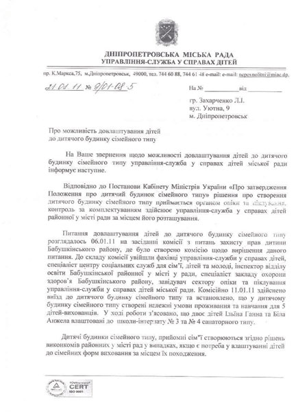 Response of the department for children regarding the necessity to extend the residential area: p.1 p.2