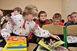 The first to receive a shipment of books was the special boarding school in Velyky Liubyn. Yurko, 17, told The Day he loved the tales about Ivasyk-Telesyk and Kolobok. Iryna, 17, was fond of reading the Holy Bible and a tale about swans. Bohdana, 16, said, “I can sing, paint, and run well, and everybody loves me because I’m polite…” This school accommodates 87 special-needs children. “Some children can be taught to read, others can’t. They’re especially fond of fairy tales, legends, and stories from Ukrainian history. It’s important for the books to be well illustrated because not all of our children can read them,” says the school librarian, Natalia Krupach. The shipment contained 270 such books. As soon as the box was opened they started eagerly leafing through the books.