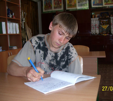 When Sergey’s mother died he left studies as he had to take care of himself. He got to the boarding school (orphanage)two years ago after a long wandering. He came to Zaporozhye on foot from his native town. At that time he was wild and reserved a little because his life compelled him to distrust people…