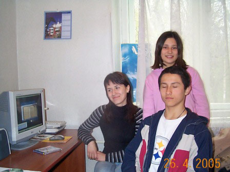Tutor Anya Demochka teach English her pupils - Nastya Shevchenko and Sasha Ermolenko