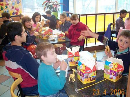 Nadya Mochalova teach Russian and English her pupils - Sveta, Vladik, Nastya and other children.