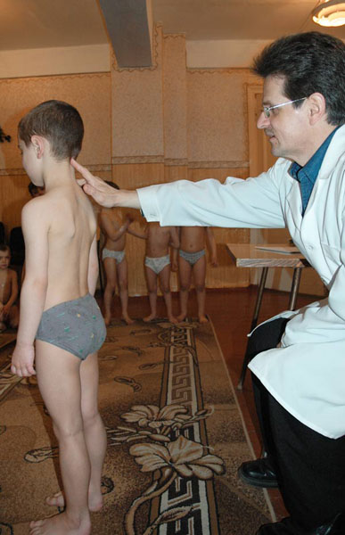 According to the child’s orthopedist-traumatologist Dmitriy Zhytnik who carried out the examination, there turned out to be only eight healthy children out of 120. Slouch, scoliosis, kyphosis, and platypodia are all a real scourge of the pupils in the middle and senior classes.