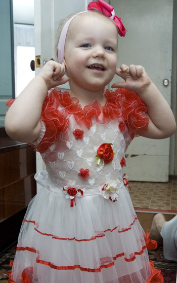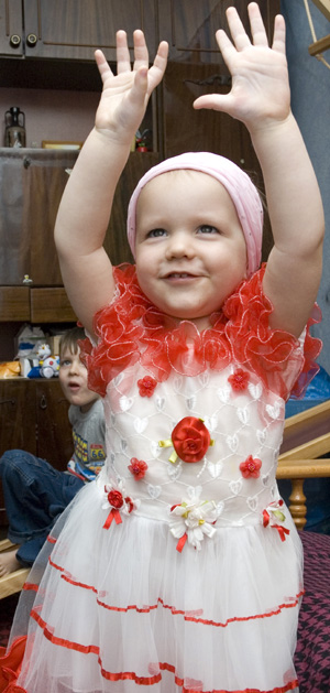 However, when the girl was asked to show her dresses and toys, she cheered up right away. Some minutes later Dasha was already joyfully demonstrating her new dresses. Not all princesses are born in royal families and not all of them live in beautiful castles. Despite the fact that this little fashionable princess has never danced in a ball, she loves dressing up and dancing! She especially loves dancing to her favourite “Rio” cartoon music.