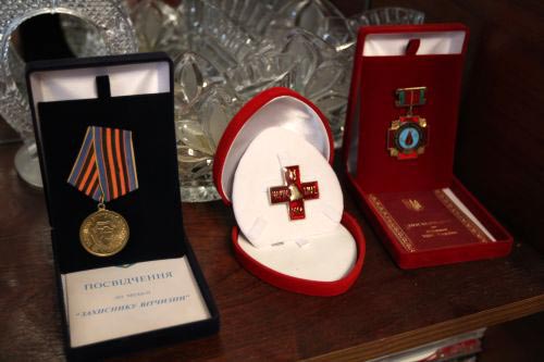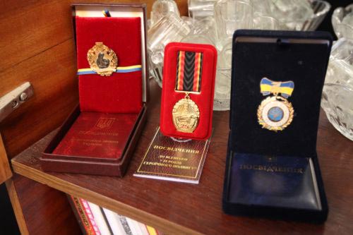 Dad’s medals. Alexander Kalenyuk took part in cleaning up after Chernobyl catastrophe, he is an ex-officer of Emergencies Ministry department of the Zaporozhye Region