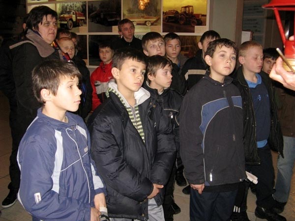 Within this project, 25 children from Matveevka Orphanage visited Firefighting Station #8 on February 29, 2012. When visiting the station, the children were shown the signal point, where they get fire alarms, the study room, and the barrack, where firefighters stay when there are no fire alarms. Besides, the children saw firefighting equipment, and as the potential future firefighters they were demonstrated the actions of firefighters in case of an alarm.