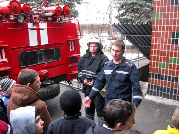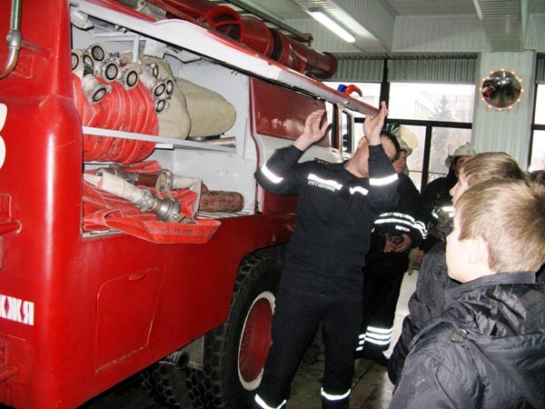 “To become a firefighter, one should first of all have very good health and be of the proper age (above 18). In Ukraine there are three institutions of higher education, where students get diplomas in this area. They are located in Cherkasy, Kharkov, and Lvov “, - informed the children the major of the same station – Igor Davidenkov.