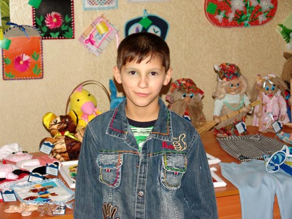 Alexander is definitely not an academically driven boy. He has managed to learn how to read and write - and that’s great enough for him! However, he is quick to learn various crafts. You can see yourself how thoroughly and knowingly he is speaking about his handicrafts set out at the school exhibition. No doubt, he has a flair for making things. And he seems to be not only good at purely “boyish” crafts, but embroidery as well. You would be astonished by the accuracy of the needle-holder made by him. He is also pretty good at drawing and is really passionate about it.