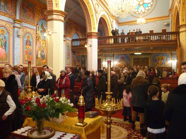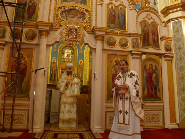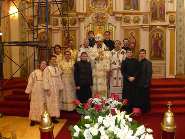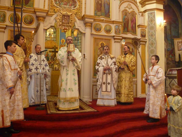 The bishop arrived to the cathedral accompanied by the entire student body of St. Sophia Ukrainian Orthodox Theological Seminary of South Bound Brook, NJ, who led the parish congregation in chanting the responses to the Archpastoral Divine Liturgy. It was quite a sight to hold as the escort of numerous cars drove through the streets of New York City’s China Town in order to reach the Ukrainian Orthodox community of Holy Trinity’s Cathedral.