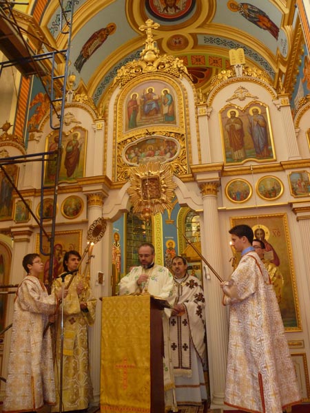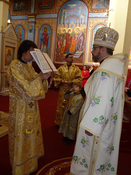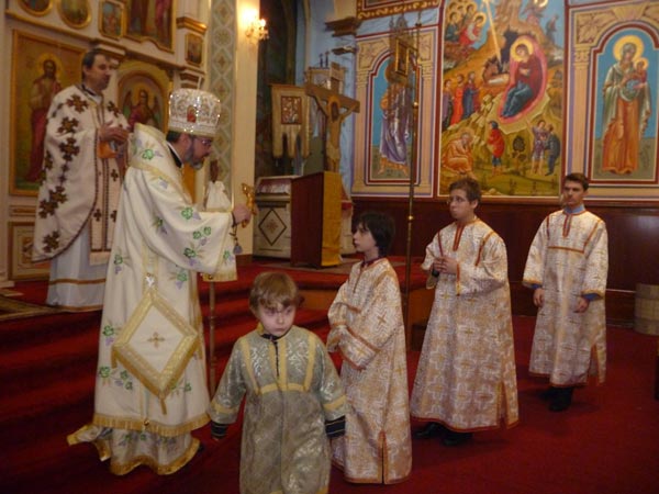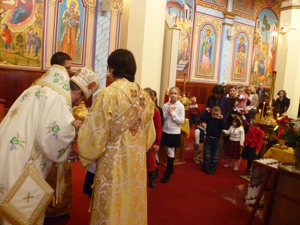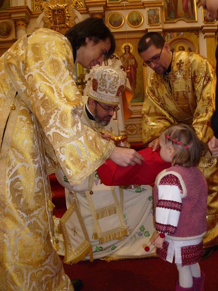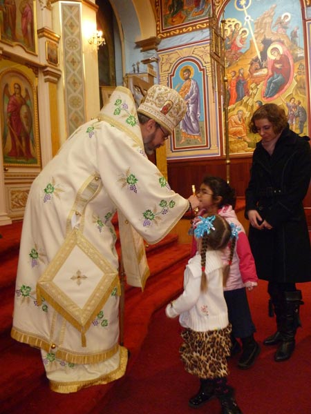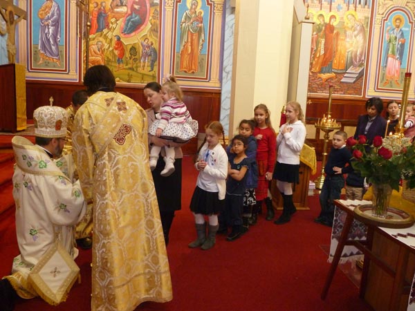 Dozens of children and faithful of the cathedral’s community received the Holy Eucharist from the hands of His Grace Bishop Daniel, who lovingly lowered himself to distribute the Holy Gifts to the smallest of the parishioners.