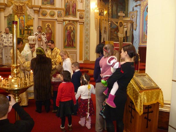 The emotions of the afternoon were painful… the tears on the eyes of people, as they looked at the images of handicapped children, brought them to a resolve to assist the Church in her charitable ministry. As the presentation came to a conclusion Bishop Daniel presented the faithful with two short movies created by Adam Kennedy of St. Volodymyr Ukrainian Orthodox Cathedral in Philadelphia, PA and Monty Swan of St. Michael and St. George Ukrainian Orthodox Church in Minneapolis, MN, reflecting the ministry of the Church in 2007 and 2010 years of our Lord.