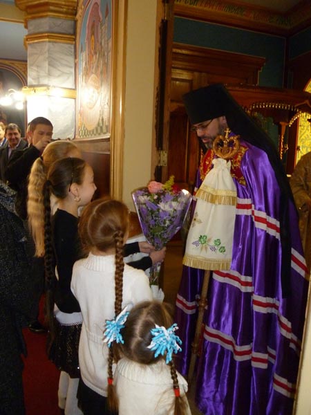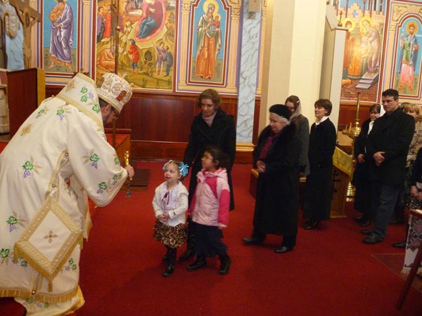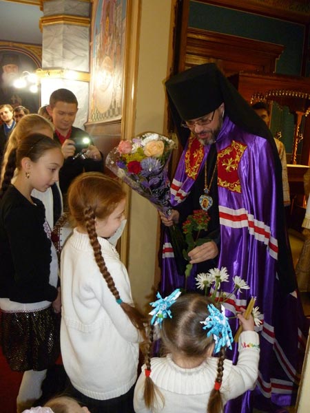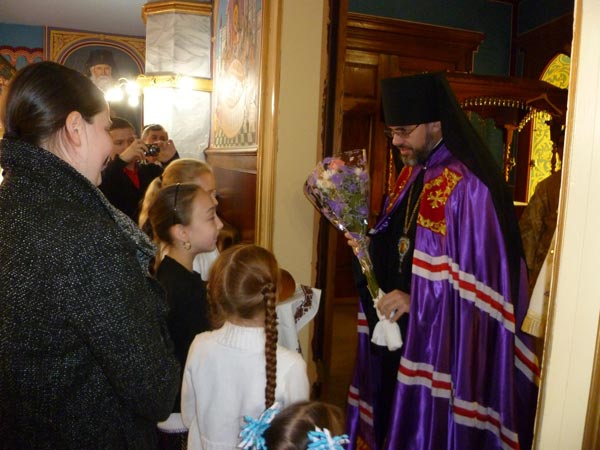 As the bishop entered the church, the youth of the parish community offered him flowers of love, which the bishop immediately shared with each of the children that with smiles on their cheeks and joy in their eyes listened to the bishop’s questions and Archpastoral guidance.