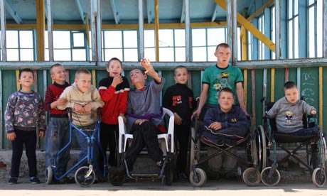 Wasted, wax-coloured little bundles of twisted limbs lie, day after day after day, in cots. Huge eyes stare – unbearably unreproachfully – from tiny, emaciated faces. The children who aren't bedridden rock back and forth on sofas and by windows for lack of anything better to do. And this, film-maker Kate Blewett notes, is one of Ukraine's better institutions. The owner, Nikolai Slavov, and his skeleton staff are caring as best they can for their charges but are bedevilled by lack of funds, their country's lack of infrastructure and a government that seems to care nothing for the children's plight.