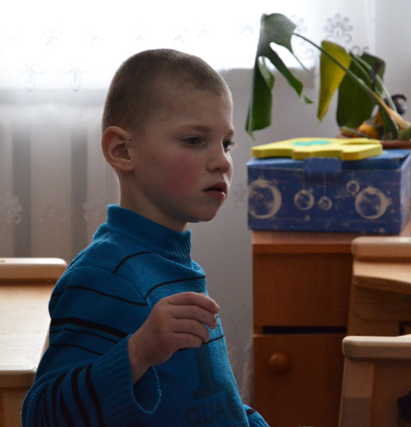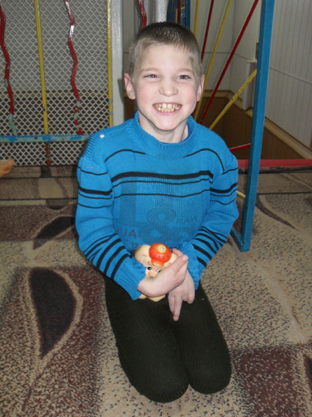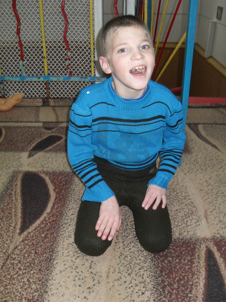 Though Oleg’s legs are malformed to some degree, he can walk and even run! The boy cannot talk, he is only able to produce some sounds that are not always easy to understand, yet he will unmistakably show his dislike for punishments: if something goes wrong, Oleg starts screaming, and cries if he’s ignored.