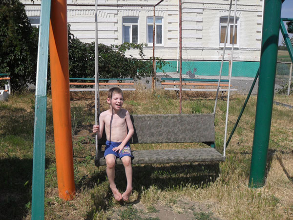 My attention was first drawn to Oleg, when we went to Berdyansk in May of the previous year. We took the children on an excursion, and then we went to lagoon for a nice little splash. As some of the children couldn't get into the water unaided, we carried them one by one into the shallow water. And there he was: in no time at all Oleg jumped into the water and went wallowing around with his head nearly submerged. While I had doubts about whether or not to go bathing again that day, Oleg had none: the little boy would make his way to the water over and over again with a happy smile on his face.