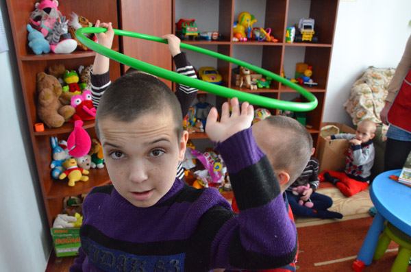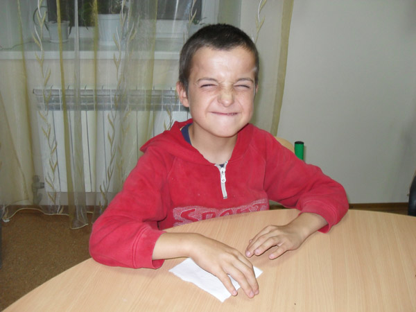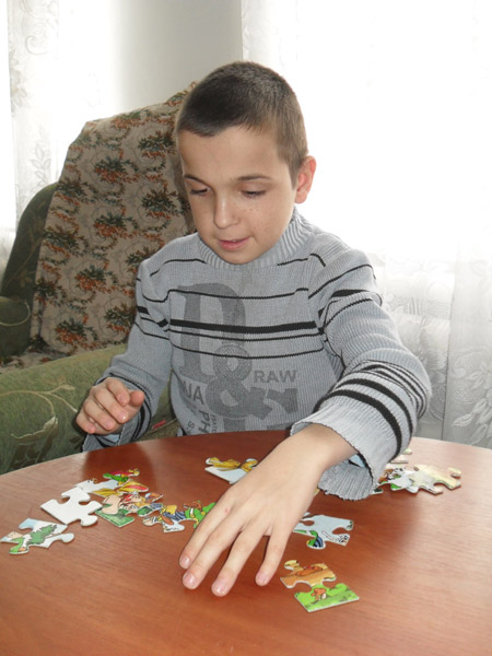 He loves to look at picture books - he can point at the same picture many times in a row, until he gets tired of it. And he has a truly unlimited store of patience for things that interest him. For instance, he can spend hours putting a puzzle together. In general, all puzzles that are sent to the orphanage, always pass through his hands - that is, he is one of the few children to assemble every puzzle by himself.