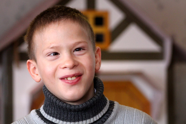 The boy must have long ago got used to the fact that his speech is not very clear to others, so he eagerly repeats his words over and over again until he is finally understood.