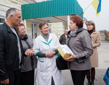 On Tuesday, October 15th, a large delegation composed of students of the Gymnasium School #1 "Hope", along with their principal Valentina Sergienko, the head of parents' committee of Gymnasium School #1 Tatyana Goryacheva, the director of the city's education department Natalya Kondratyuk, the deputy of the city council and the manager of the public organization "Our Children" Olga Boiko, and representatives of the Christian Orthodox church, visited the Kalinovka village of the Chernigov Region, to hand over the collected items.