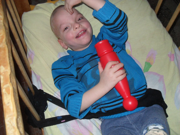 Less than a year ago Vladislav got his chance to get out his bed where he used to spend all his free time. More than that, he coped with the task set for him rather well and fast. When he was taught to walk, he made efforts himself, too. One night he got out his bed, went or maybe crawled to the door of the nannies’ room and tapped on the door. Sure, the ladies must have been frightened, and after this case our mutual friends promised to teach him to ask nannies for the keys to the play room. So, you see that Vladislav is a smart and an active boy.