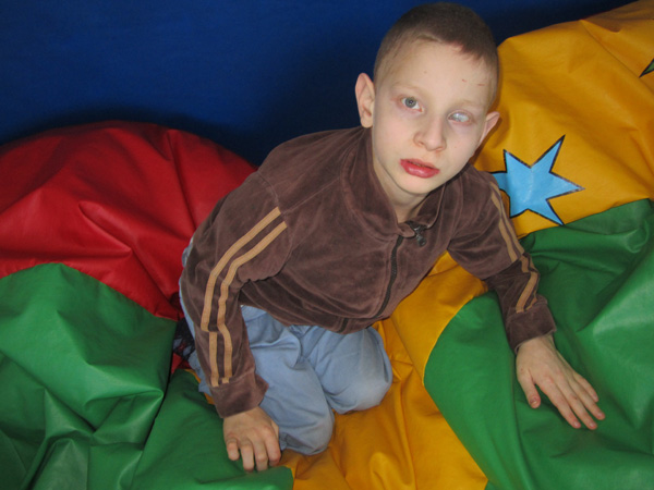 Michail almost never plays with toys but may hold them for a while. If there is nothing interesting around him he sits lonely and swings for ages. He stops swinging as soon as someone calls his name – as if he hopes that something miraculous is finally going to happen in his life.