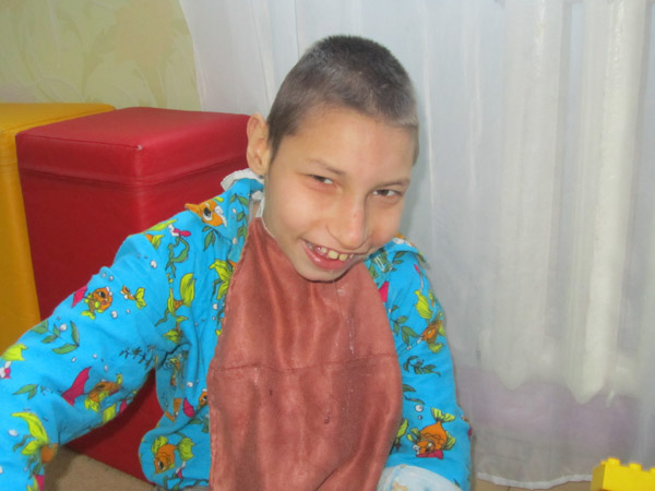 I spent with Lyosha (Alexey) a month or so. The greatest impression was that he was a sweet young man who was also a survivor. He does not walk or talk but he gets where he needs to go and expresses his needs wonderfully.
