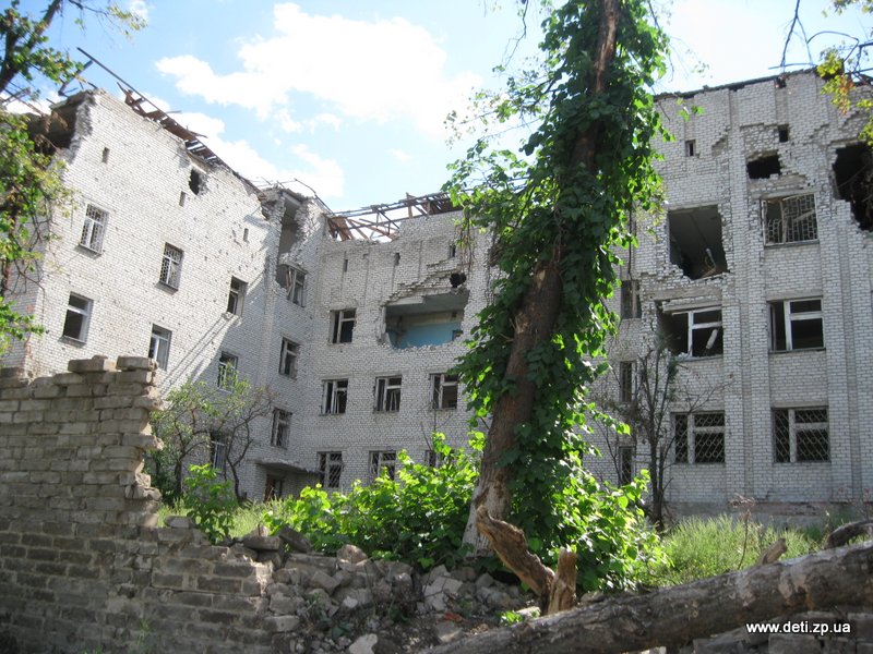 The building of the Slavyansk Psychiatric Hospital is almost completely destroyed