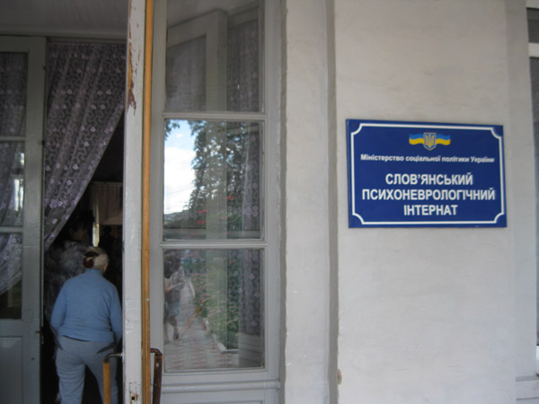 While in Slavyansk, we visited their women's psychoneurological group home. The group home has space to house 300 residents, but because of those who had to be moved in from other group homes, it currently houses 600 women. The place is horribly crowded, and many women have to sleep in the hallways and the lobbies. Frankly, I was unable to understand why those unfortunate women couldn't be moved to the group homes of other adjacent regions. Overall, the group home sustained hardly any damage from the shelling (only one shell struck a supply shed), and the residents were evacuated to other group homes during the time when active fighting took place.