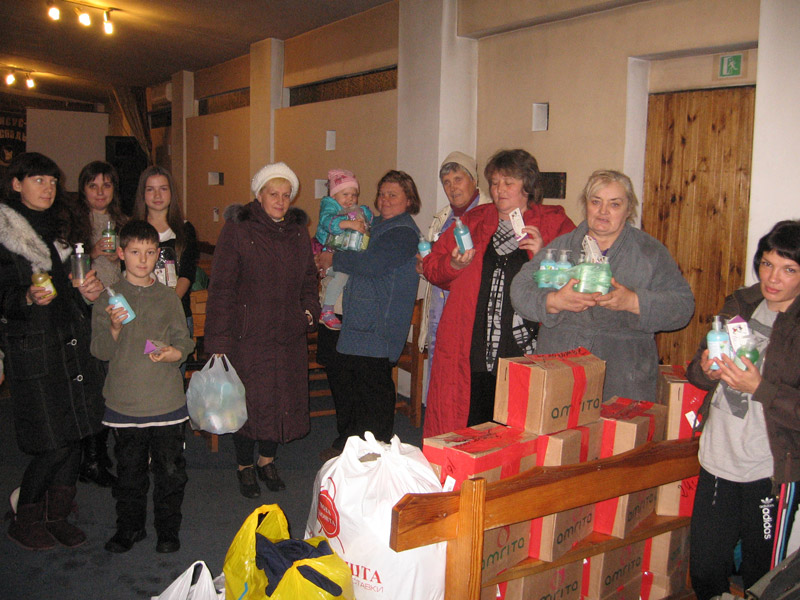 Since June 2014 the office of Happy Child has seen many people who bring humanitarian aid for people who fled the war. The Amrita Company has recently delivered the foundation a big number of washing agents, shampoos, toothpastes etc. These parcels are destined for the group of displaced people who are staying at the “Rekhovof” Christian camp in Velikiy Lug district of Zaporizhzhzia.
