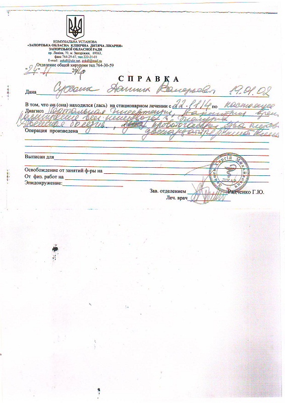 deti.zp.uaFundraising is closed! We managed to collect 900 USD. of 5700 USD. The missing amount on the operation, intensive care and rehabilitation period promised to pay Rusfond. I sincerely thank everyone for their support!
