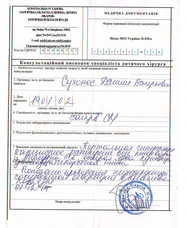 In November 2014, the boy was taken to the Intensive Care Unit, where he was given another diagnosis; thus, portal hypertension was accompanied with variceal bleeding in esophagus and icterus. Ulcer disease, bleeding duodenal ulcer…