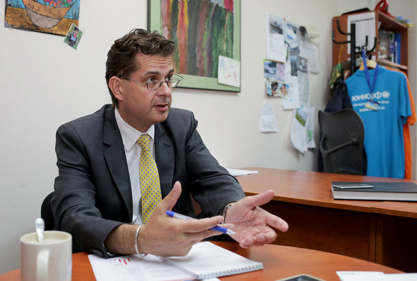 Rudi Luchmann, deputy representative of the United Nations Fund for Children (UNICEF), gives an interview to the Kyiv Post in his office of Kyiv, on July 29.