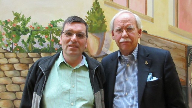 Koen Carlier (L), founder of Christians for Israel Ukraine, and Pim van der Hoff, CFI vice chairman, in Odessa, Ukraine, May 12, 2017. (Sue Surkes)