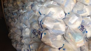 Christians for Israel food parcels waiting to be delivered in Ukraine, May 10, 2017. (Sue Surkes)