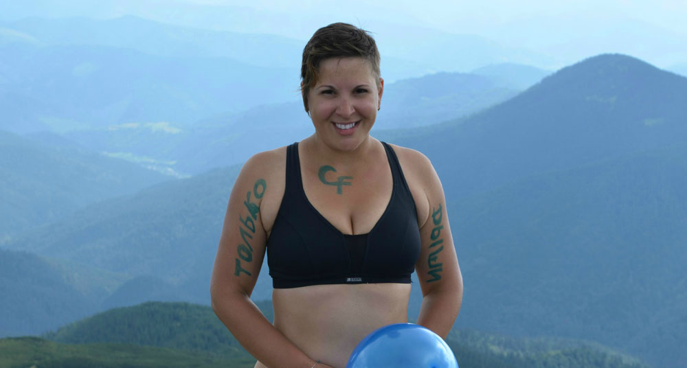 In the photo:Me and other members of “Ball of Yarn” at the top of Hoverla. We started our flash mob at the highest point in Ukraine! We support Cystic Fibrosis!