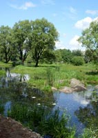 The very place in which this manor, as well as Radomyshl itself, is located is interesting. It is a continuous granite plateau. These granite slabs look very picturesque on the nearby river and lake banks: they form small water cascades and even waterfalls in which local children and adults take a dip as you can hear their never-ending clamor.